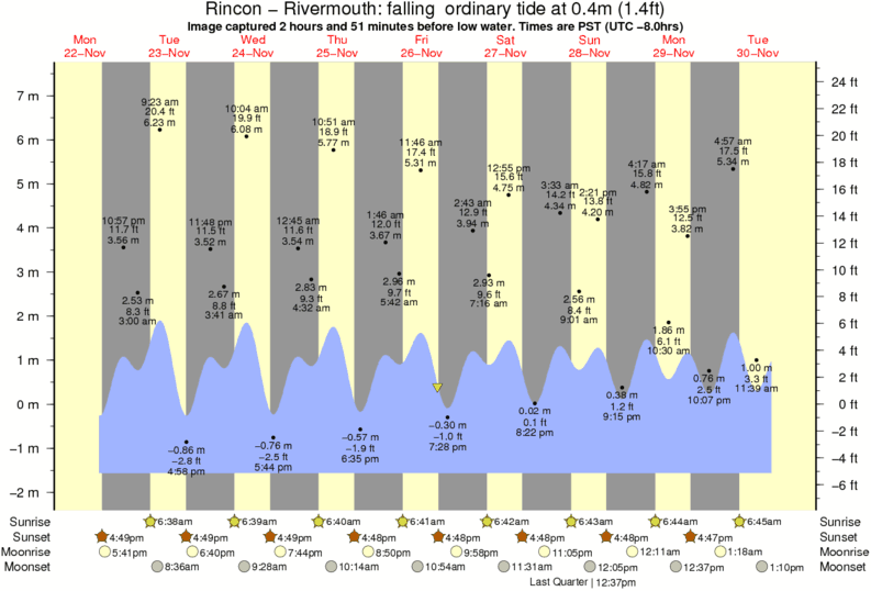 Forecast wind and swell just offshore from Rincon - Rivermouth around the time the photo was taken