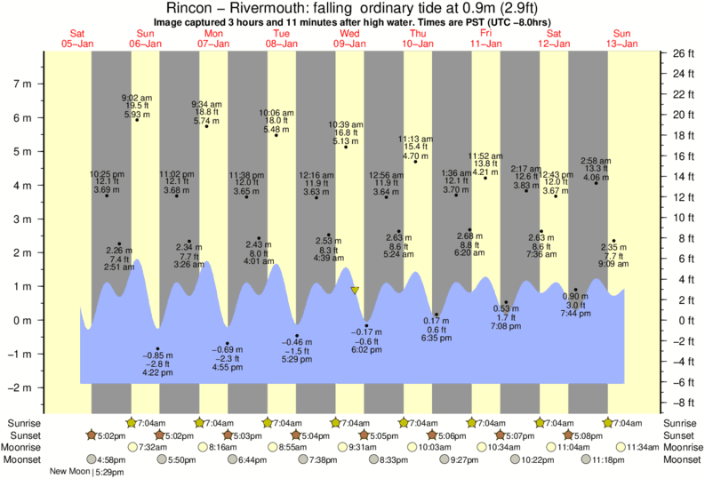Forecast wind and swell just offshore from Rincon - Rivermouth around the time the photo was taken