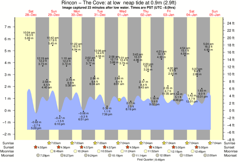 Forecast wind and swell just offshore from Rincon - The Cove around the time the photo was taken