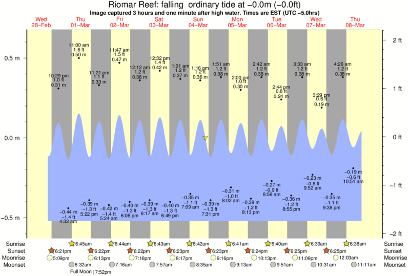 Forecast wind and swell just offshore from Riomar Reef around the time the photo was taken