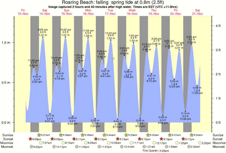 Image captured 2 hours and 40 minutes after high water (falling spring tide). Tide height was 0.8m (2.5 ft). Range 1.21m (4.0 ft). Toggle tide graph