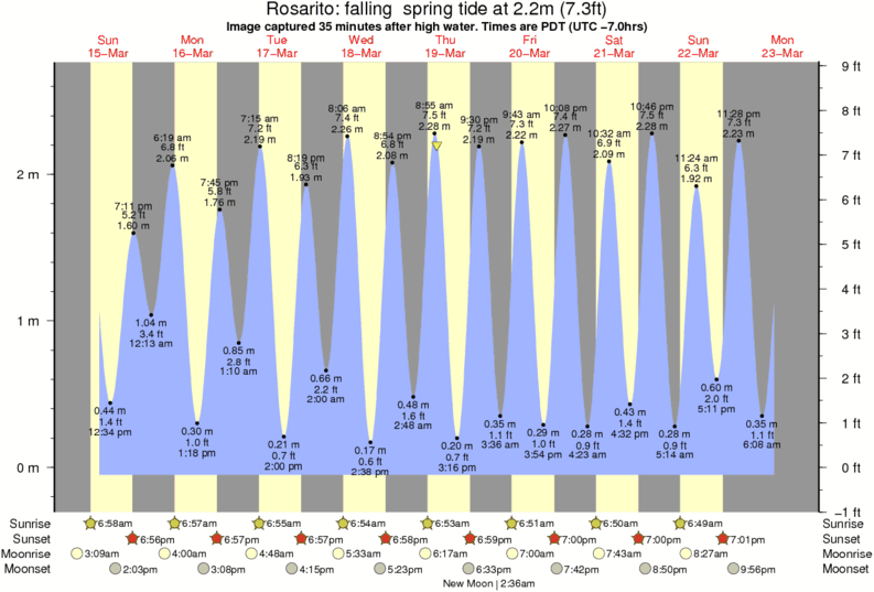 Image captured 35 minutes after high water (falling spring tide). Tide height was 2.2m (7.3 ft). Range 2.56m (8.4 ft). Toggle tide graph