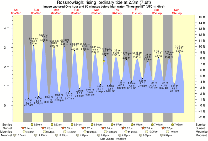 Image captured One hour and 50 minutes before high water (rising ordinary tide). Tide height was 2.3m (7.6 ft). Range 4.61m (15.1 ft). Toggle tide graph