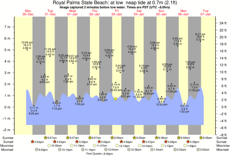 Forecast wind and swell just offshore from Royal Palms State Beach around the time the photo was taken