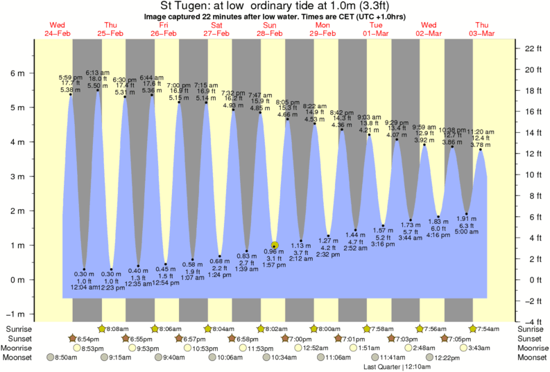 Image captured 22 minutes after low water (at low ordinary tide). Tide height was 1.0m (3.3 ft). Range 6.84m (22.4 ft). Toggle tide graph