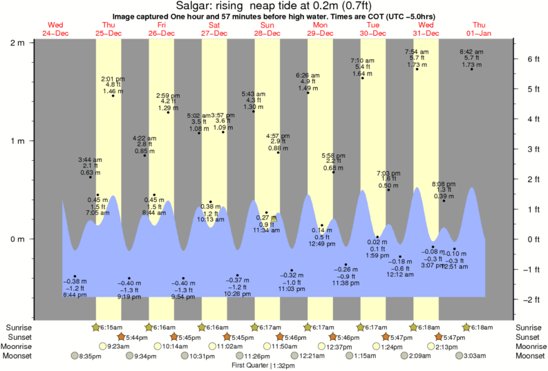 Image captured One hour and 57 minutes before high water (rising neap tide). Tide height was 0.2m (0.7 ft). Range 2.39m (7.8 ft). Toggle tide graph