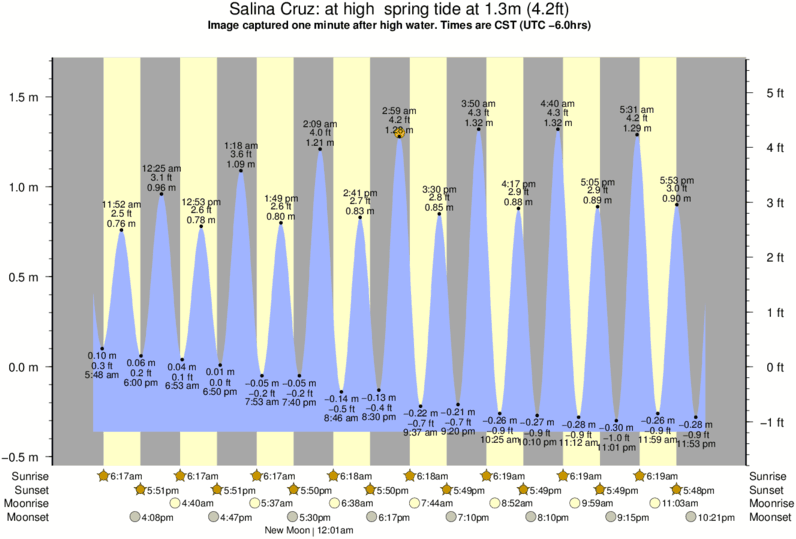 Image captured one minute after high water (at high spring tide). Tide height was 1.3m (4.2 ft). Range 1.89m (6.2 ft). Toggle tide graph