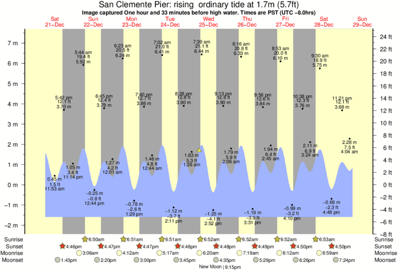 Forecast wind and swell just offshore from San Clemente Pier around the time the photo was taken