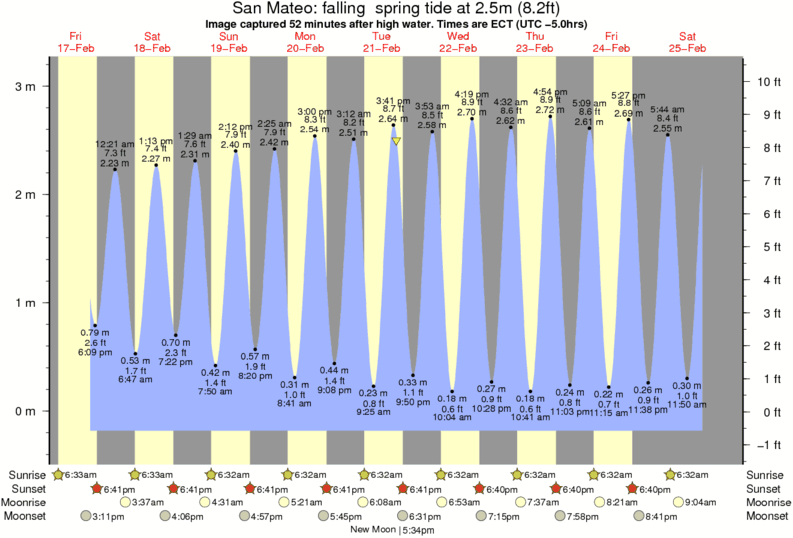 Image captured 52 minutes after high water (falling spring tide). Tide height was 2.5m (8.2 ft). Range 3.14m (10.3 ft). Toggle tide graph