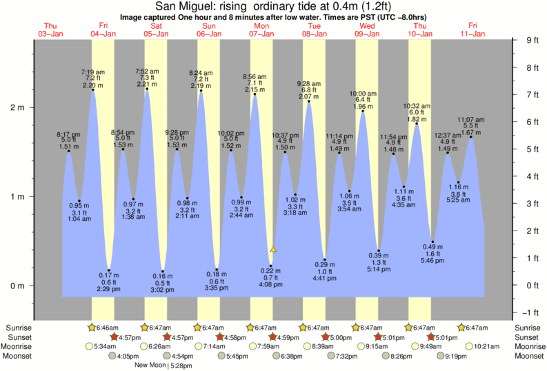 Forecast wind and swell just offshore from San Miguel around the time the photo was taken