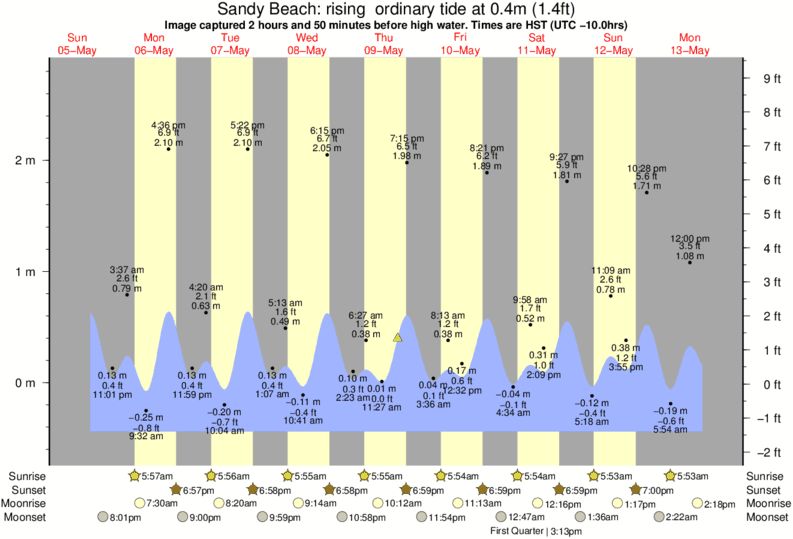 Forecast wind and swell just offshore from Sandy Beach around the time the photo was taken