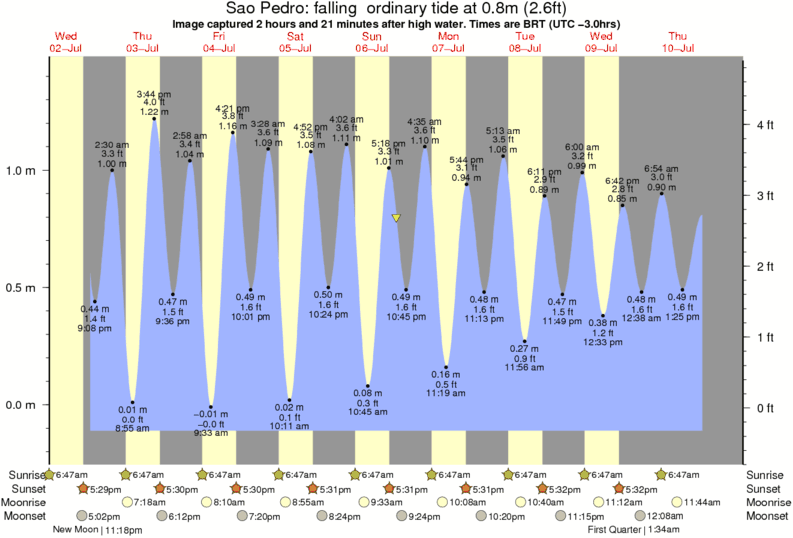 Image captured 2 hours and 21 minutes after high water (falling ordinary tide). Tide height was 0.8m (2.6 ft). Range 1.45m (4.8 ft). Toggle tide graph
