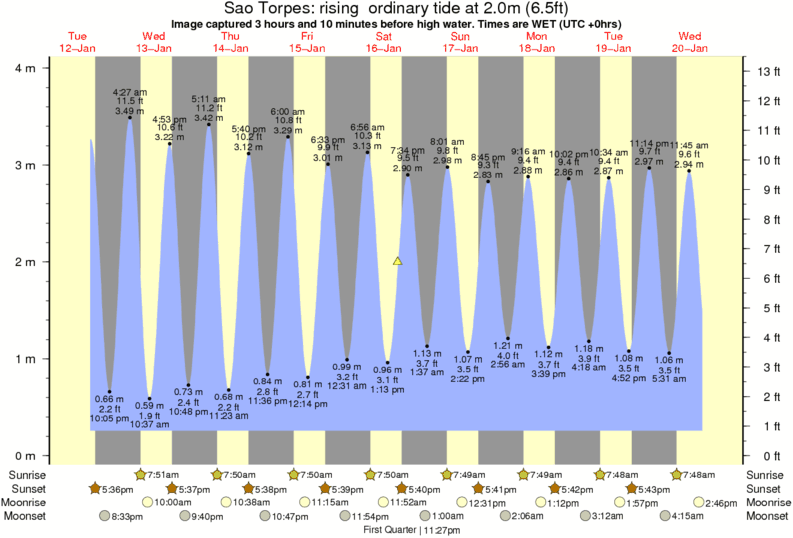 Image captured 3 hours and 10 minutes before high water (rising ordinary tide). Tide height was 2.0m (6.5 ft). Range 3.51m (11.5 ft). Toggle tide graph