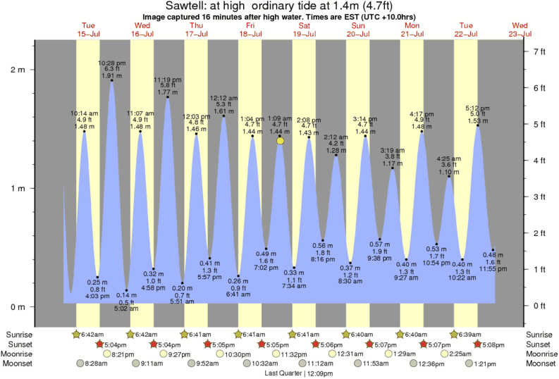Image captured 16 minutes after high water (at high ordinary tide). Tide height was 1.4m (4.7 ft). Range 2.02m (6.6 ft). Toggle tide graph