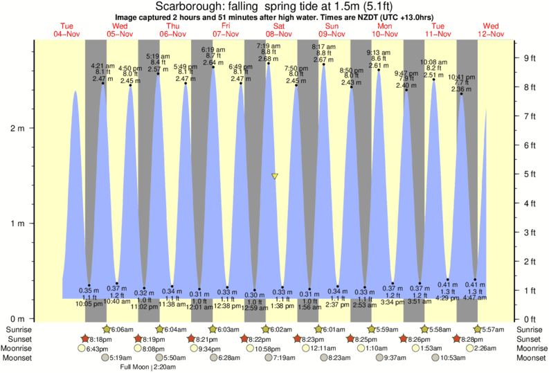 Image captured 2 hours and 51 minutes after high water (falling spring tide). Tide height was 1.5m (5.1 ft). Range 2.47m (8.1 ft). Toggle tide graph
