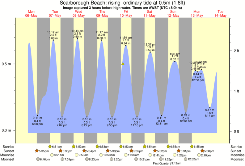 Forecast wind and swell just offshore from Scarborough Beach around the time the photo was taken