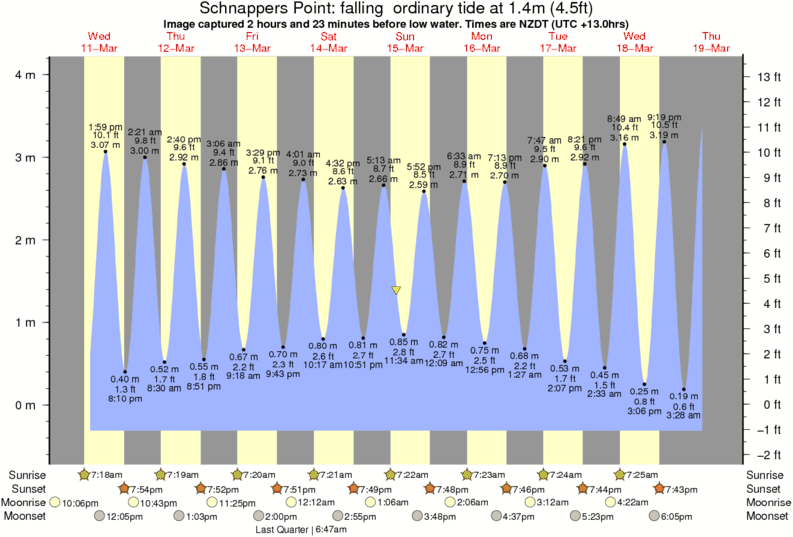 Image captured 2 hours and 23 minutes before low water (falling ordinary tide). Tide height was 1.4m (4.5 ft). Range 4.12m (13.5 ft). Toggle tide graph