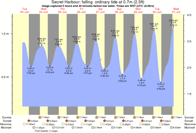 Forecast wind and swell just offshore from Secret Harbour around the time the photo was taken