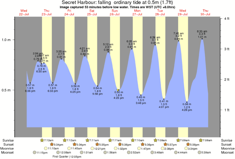 Image captured 53 minutes before low water (falling ordinary tide). Tide height was 0.5m (1.7 ft). Range 1.00m (3.3 ft). Toggle tide graph