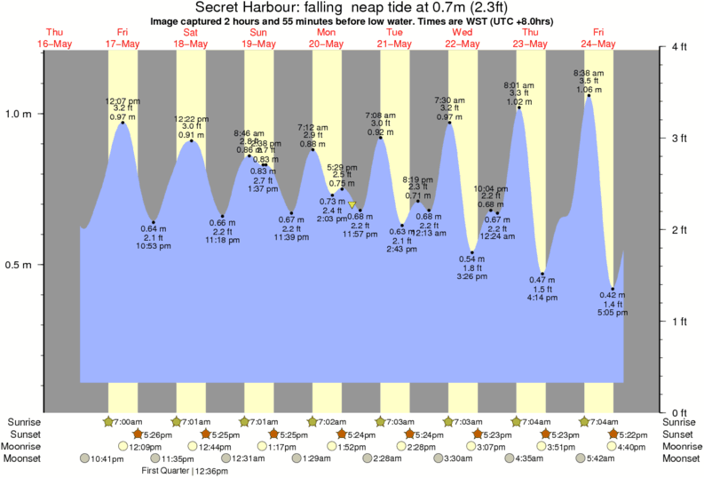 Image captured 2 hours and 55 minutes before low water (falling neap tide). Tide height was 0.7m (2.3 ft). Range 1.00m (3.3 ft). Toggle tide graph