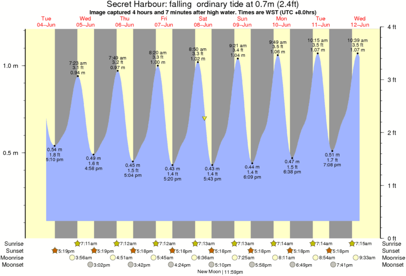 Image captured 4 hours and 7 minutes after high water (falling ordinary tide). Tide height was 0.7m (2.4 ft). Range 1.00m (3.3 ft). Toggle tide graph