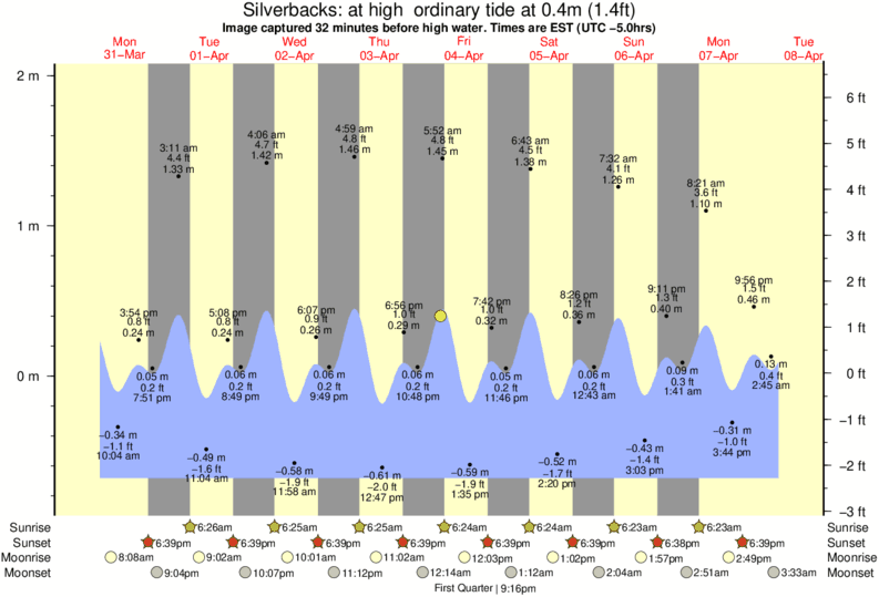 Image captured 32 minutes before high water (at high ordinary tide). Tide height was 0.4m (1.4 ft). Range 2.51m (8.2 ft). Toggle tide graph