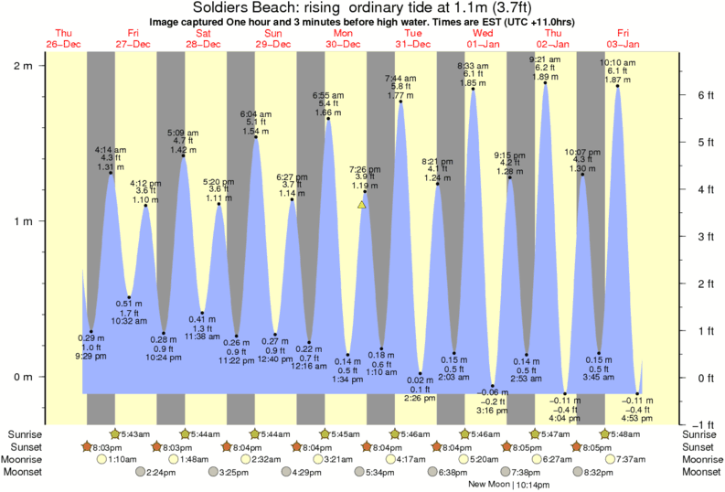 Forecast wind and swell just offshore from Soldiers Beach around the time the photo was taken
