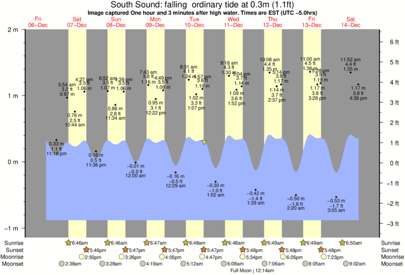 Image captured One hour and 3 minutes after high water (falling ordinary tide). Tide height was 0.3m (1.1 ft). Range 2.62m (8.6 ft). Toggle tide graph