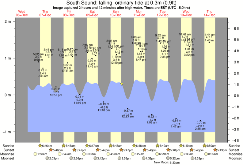 Image captured 2 hours and 42 minutes after high water (falling ordinary tide). Tide height was 0.3m (0.9 ft). Range 2.83m (9.3 ft). Toggle tide graph