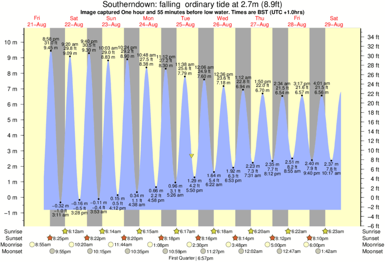 Image captured One hour and 55 minutes before low water (falling ordinary tide). Tide height was 2.7m (8.9 ft). Range 10.66m (35.0 ft). Toggle tide graph