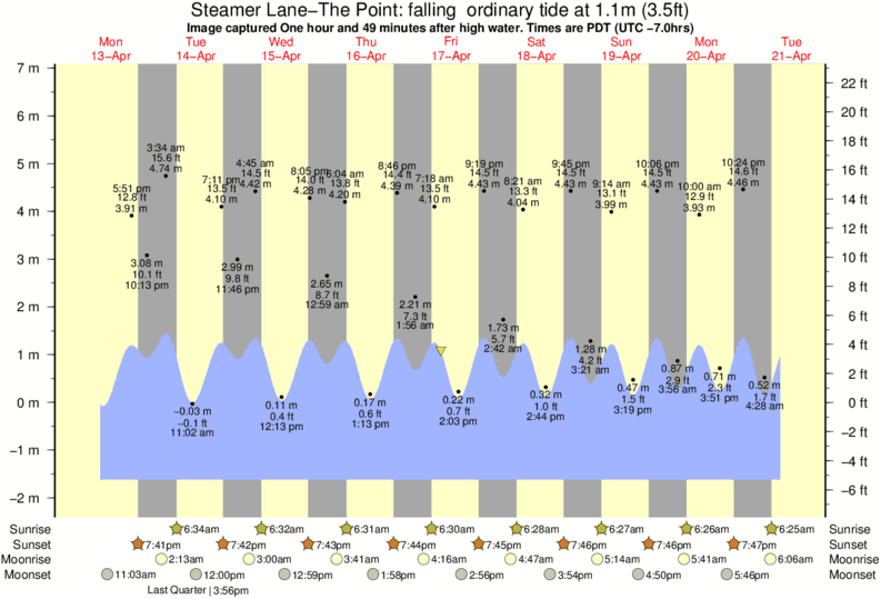 Forecast wind and swell just offshore from Steamer Lane-The Point around the time the photo was taken