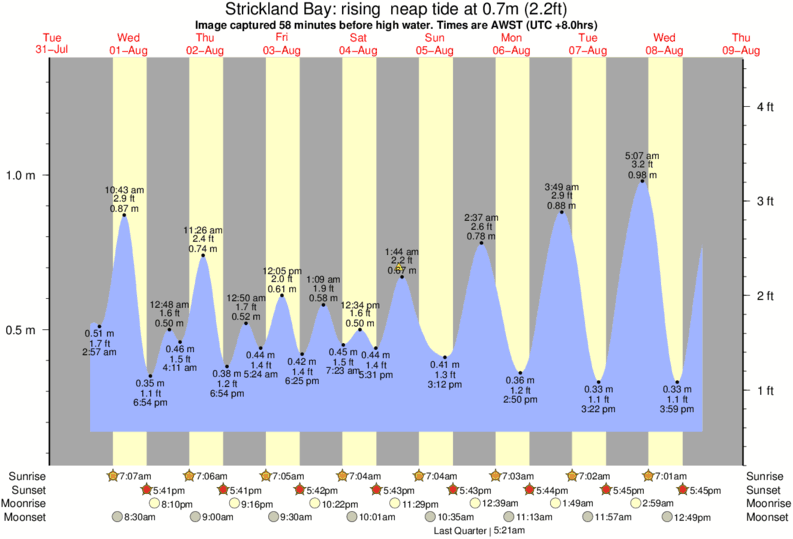 Image captured 58 minutes before high water (rising neap tide). Tide height was 0.7m (2.2 ft). Range 1.10m (3.6 ft). Toggle tide graph