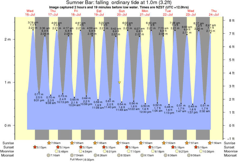 Image captured 2 hours and 19 minutes before low water (falling ordinary tide). Tide height was 1.0m (3.2 ft). Range 2.38m (7.8 ft). Toggle tide graph