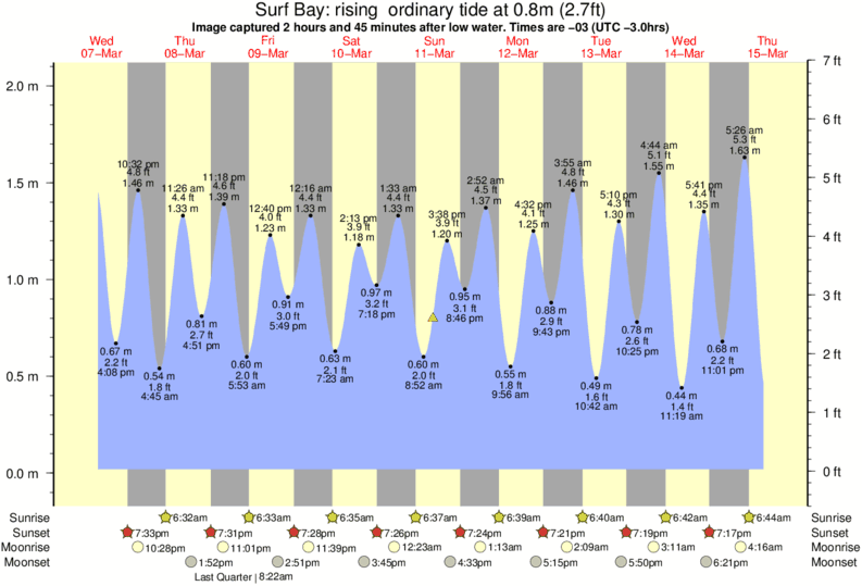 Image captured 2 hours and 45 minutes after low water (rising ordinary tide). Tide height was 0.8m (2.7 ft). Range 1.91m (6.3 ft). Toggle tide graph