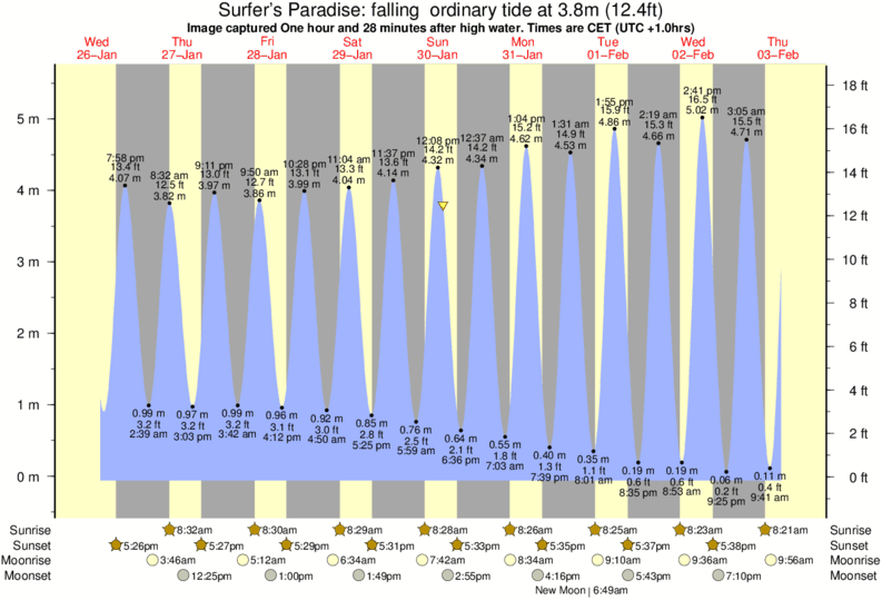 Forecast wind and swell just offshore from Surfer's Paradise around the time the photo was taken