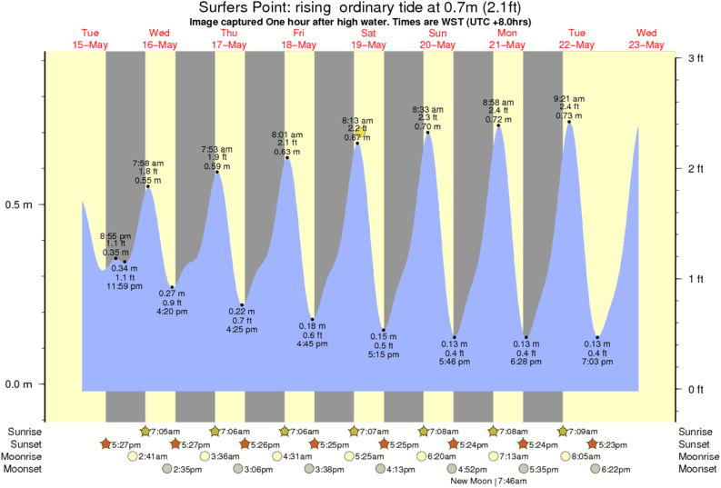 Forecast wind and swell just offshore from Surfers Point around the time the photo was taken
