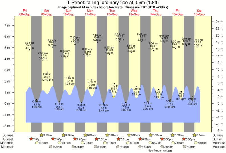 Image captured 41 minutes before low water (falling ordinary tide). Tide height was 0.6m (1.8 ft). Range 8.64m (28.3 ft). Toggle tide graph