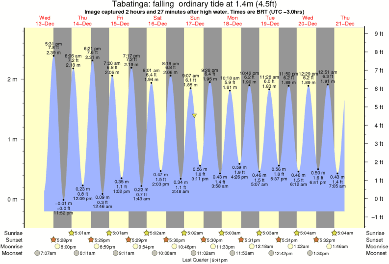 Image captured 2 hours and 27 minutes after high water (falling ordinary tide). Tide height was 1.4m (4.5 ft). Range 2.78m (9.1 ft). Toggle tide graph