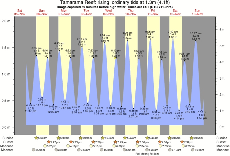 Image captured 59 minutes before high water (rising ordinary tide). Tide height was 1.3m (4.1 ft). Range 1.86m (6.1 ft). Toggle tide graph
