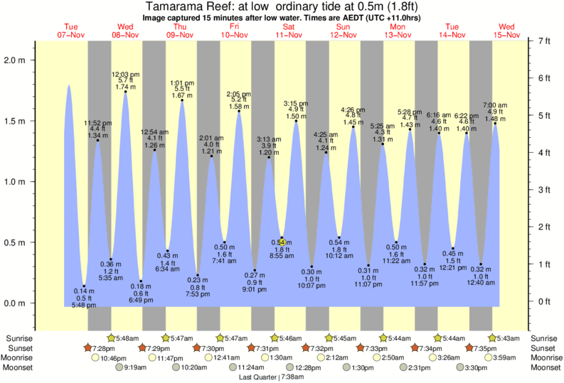 Image captured 15 minutes after low water (at low ordinary tide). Tide height was 0.5m (1.8 ft). Range 1.99m (6.5 ft). Toggle tide graph