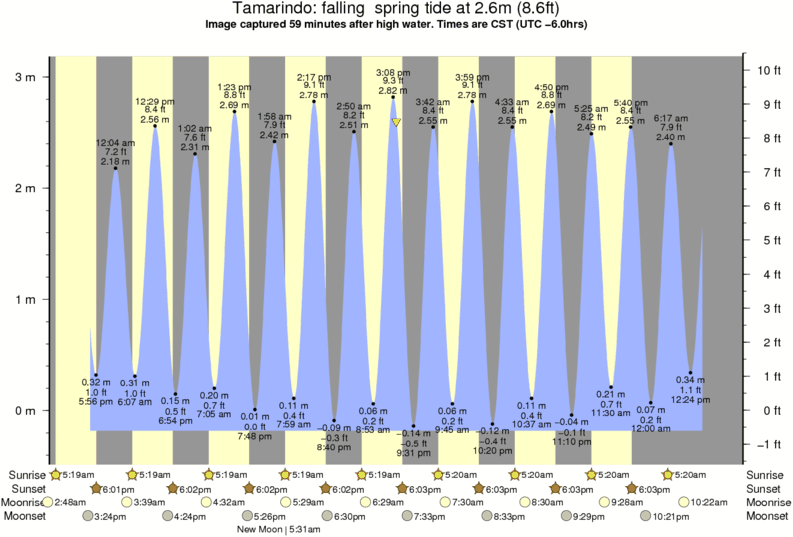 Image captured 59 minutes after high water (falling spring tide). Tide height was 2.6m (8.6 ft). Range 3.06m (10.0 ft). Toggle tide graph