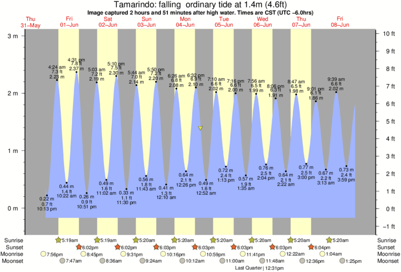 Forecast wind and swell just offshore from Tamarindo around the time the photo was taken