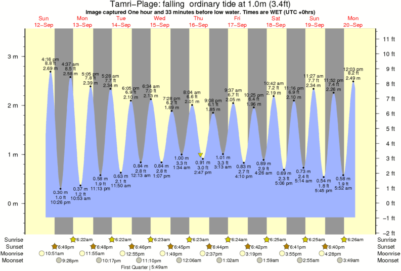 Image captured One hour and 33 minutes before low water (falling ordinary tide). Tide height was 1.0m (3.4 ft). Range 3.50m (11.5 ft). Toggle tide graph