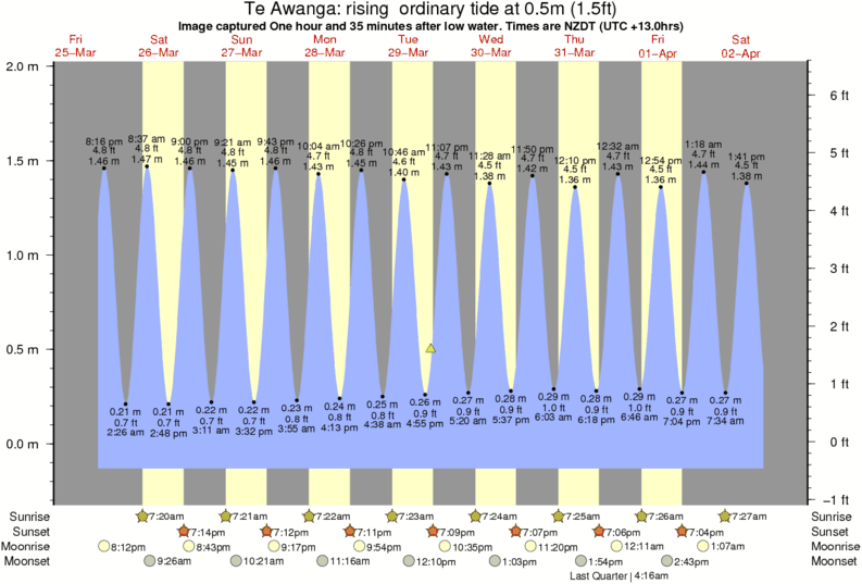 Image captured One hour and 35 minutes after low water (rising ordinary tide). Tide height was 0.5m (1.5 ft). Range 1.96m (6.4 ft). Toggle tide graph