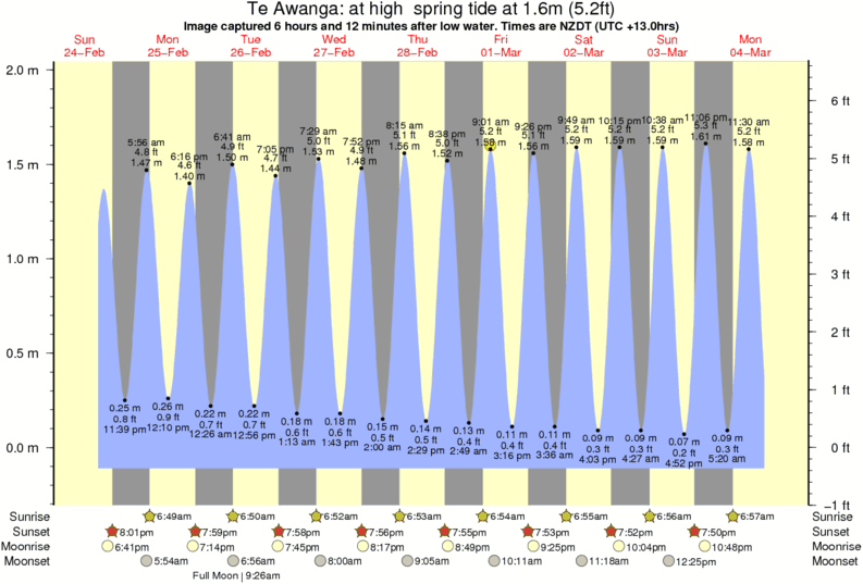 Image captured 6 hours and 12 minutes after low water (at high spring tide). Tide height was 1.6m (5.2 ft). Range 1.96m (6.4 ft). Toggle tide graph
