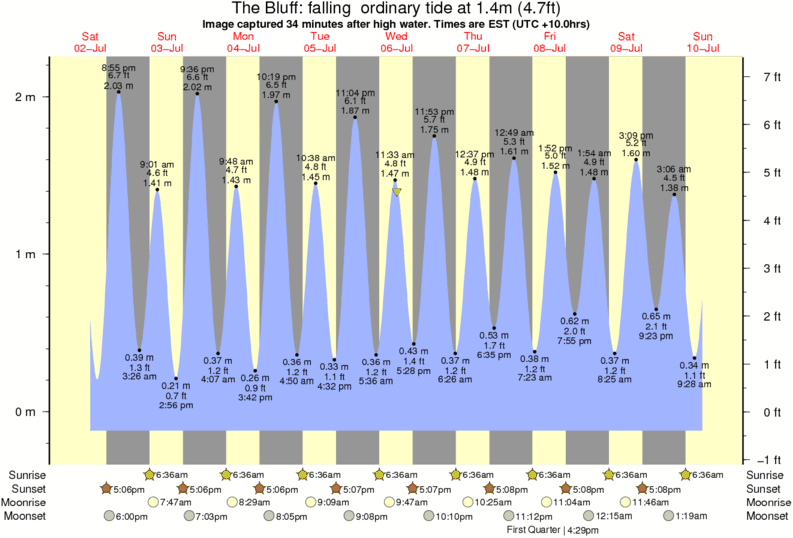 Image captured 34 minutes after high water (falling ordinary tide). Tide height was 1.4m (4.7 ft). Range 2.16m (7.1 ft). Toggle tide graph