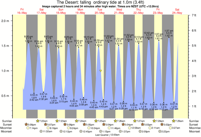 Image captured 2 hours and 34 minutes after high water (falling ordinary tide). Tide height was 1.0m (3.4 ft). Range 1.73m (5.7 ft). Toggle tide graph