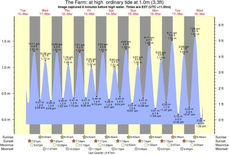 Image captured 8 minutes before high water (at high ordinary tide). Tide height was 1.0m (3.3 ft). Range 1.88m (6.2 ft). Toggle tide graph