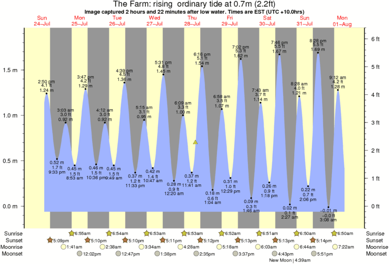 Image captured 2 hours and 22 minutes after low water (rising ordinary tide). Tide height was 0.7m (2.2 ft). Range 1.84m (6.0 ft). Toggle tide graph