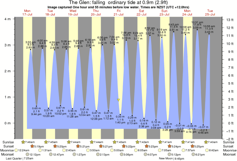 Image captured One hour and 55 minutes before low water (falling ordinary tide). Tide height was 0.9m (2.9 ft). Range 3.91m (12.8 ft). Toggle tide graph